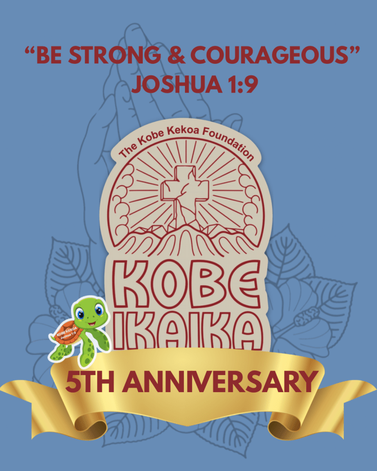 The Kobe Kekoa Foundation is a qualified 501(c)(3) tax-exempt not-for-profit organization, EIN 93-2079291; all contributions are tax-deductible. We Pray that God uses this foundation to touch hearts and lives. Continuing to trust God and “Be Strong and Courageous” -Joshua 1:9
