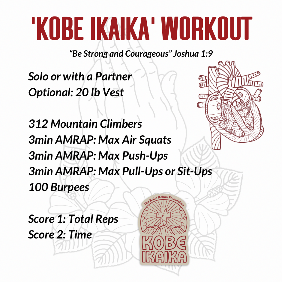Help spread the word by sharing you completing the ‘Kobe Ikaika’ workout or ‘Turtle’ run. Tag @kobeikaika on any posts we would love to share it.